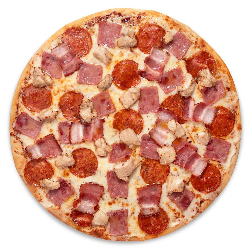 тесто фирменное, соус неаполитанский, сыр мацарелла, пармезан, дор блю, голландский