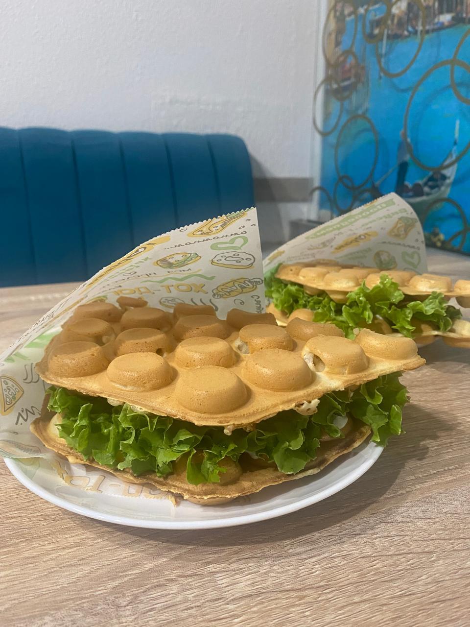 Ветчина, моцарелла, огурцы, помидоры, лист салата, соус белый, сырный