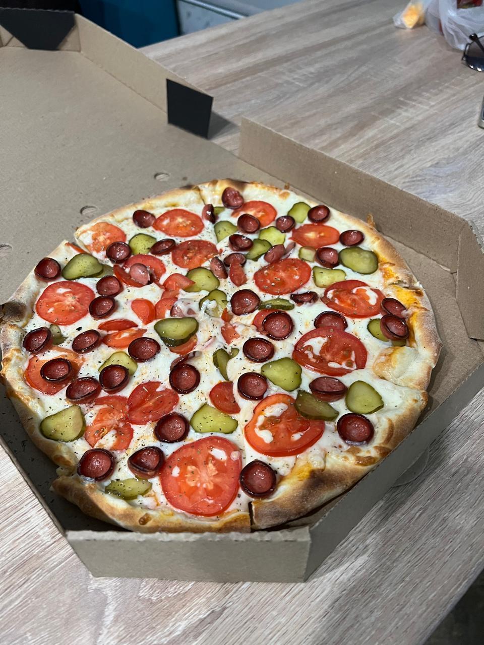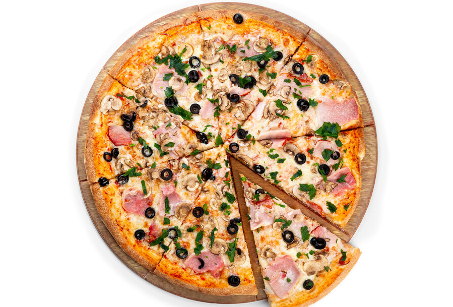 П/к колбаса, карбонад, помидоры, грибы, перец болгарский, брокколи, маслины