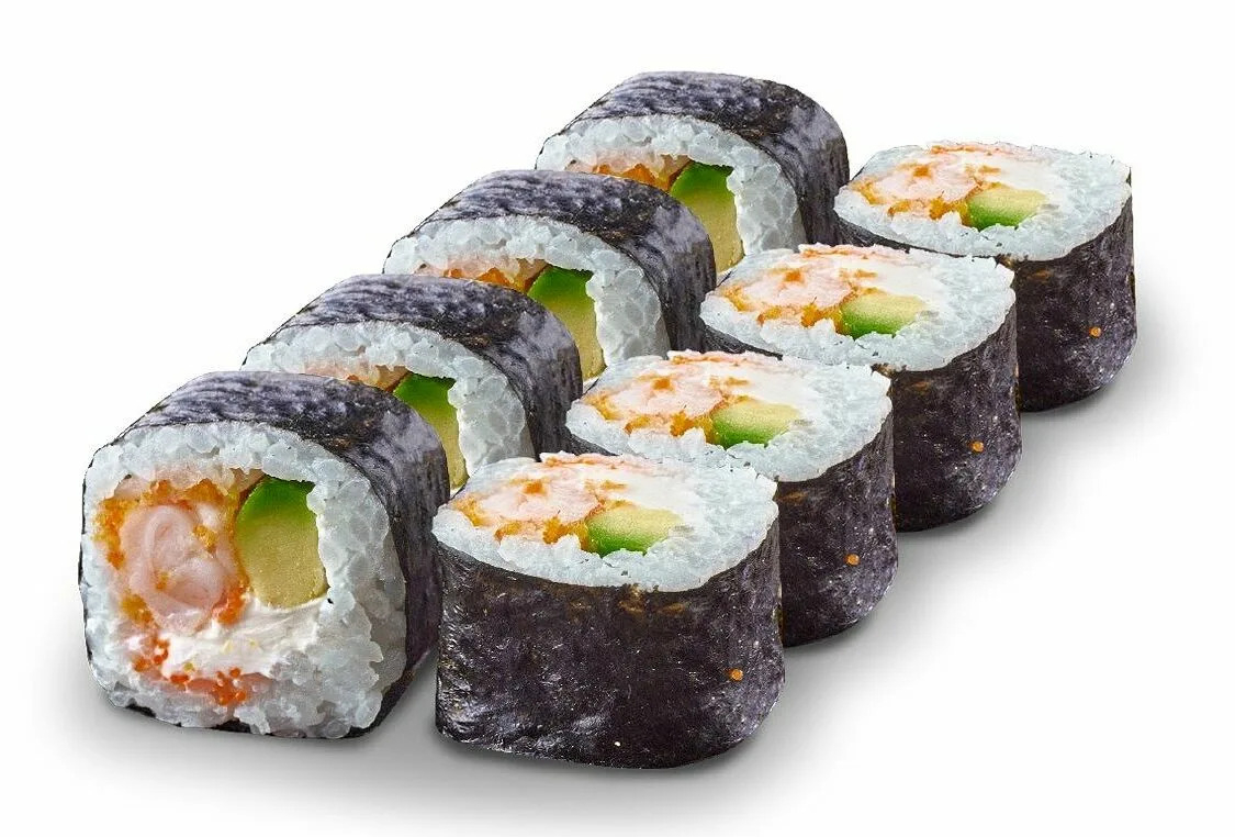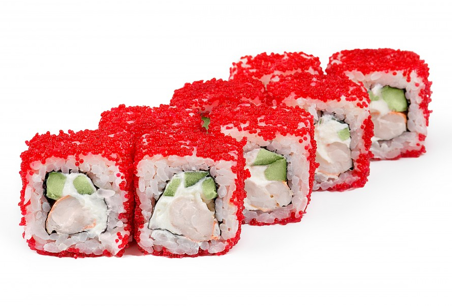 Креветка коктейльная, огурец, слив. сыр, тобико, кунжут