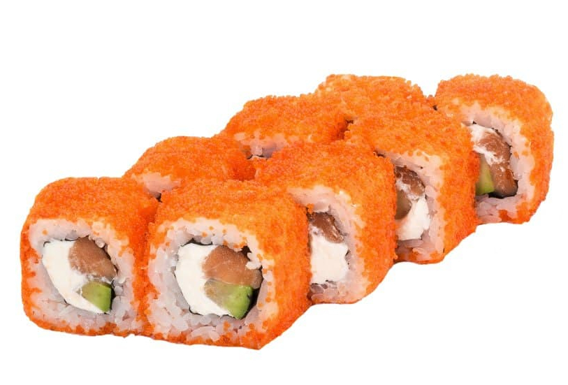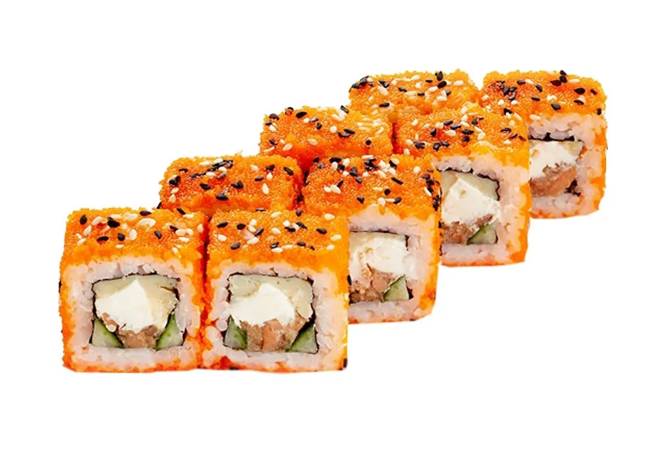 Лосось с/с, огурец, сливочный сыр, тобико, соус кимчи