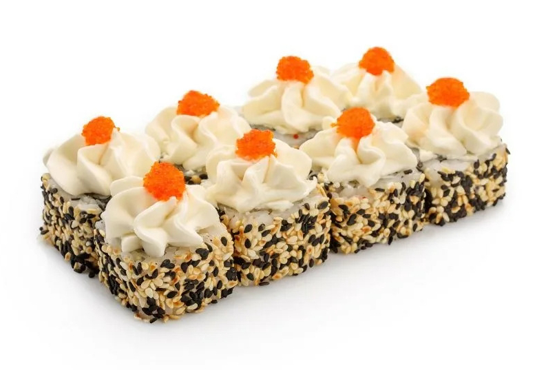 Лосось с/с, крабовая палочка, огурец, слив. сыр, тобико, кунжут