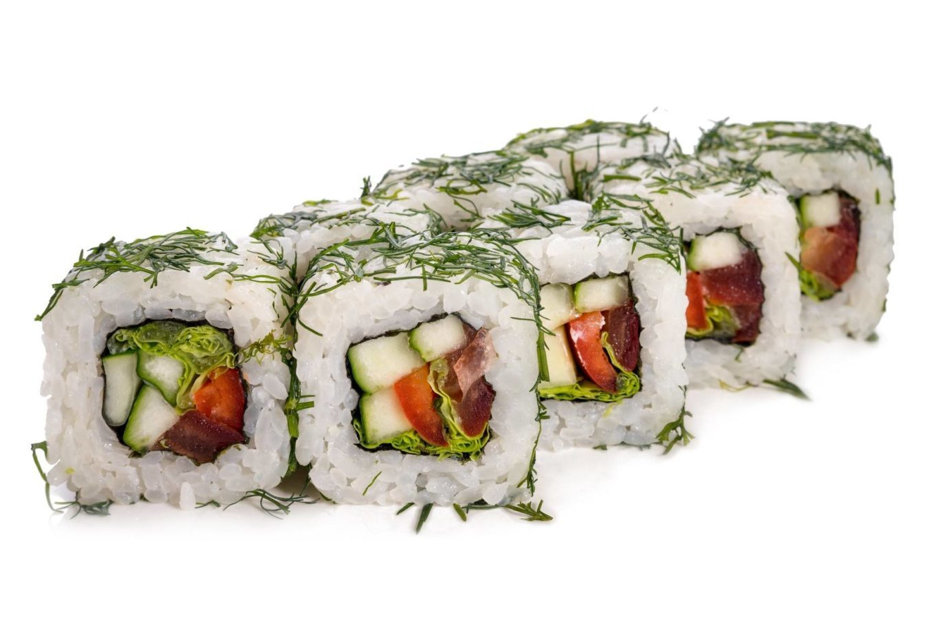 Королевская креветка, огурец, слив. сыр, тобико, соус Кимчи