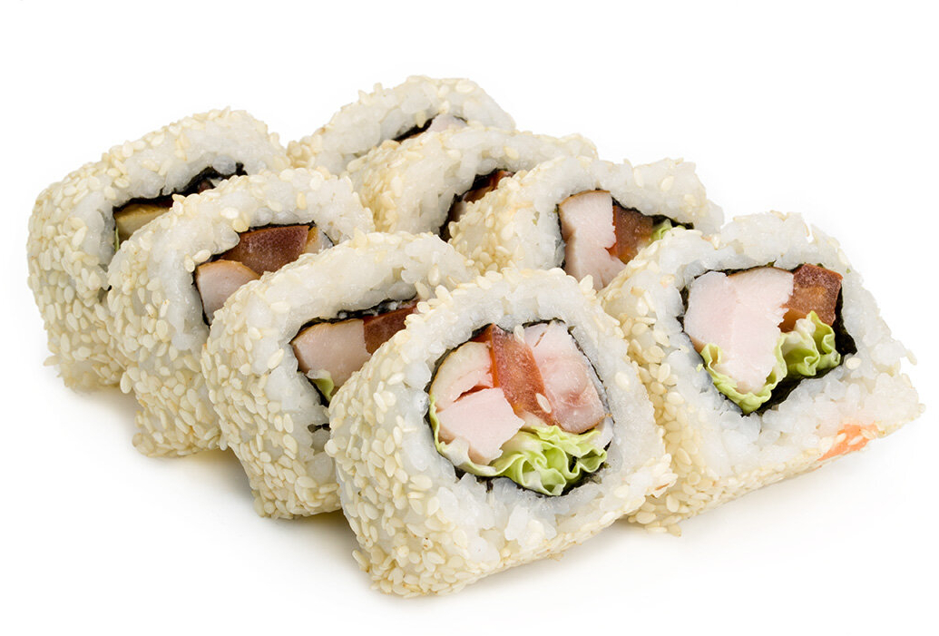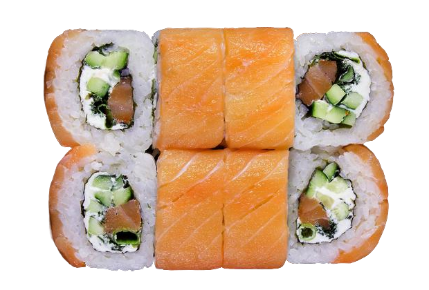 Лосось с/с, огурец, слив. сыр, чука, тобико, соус ореховый